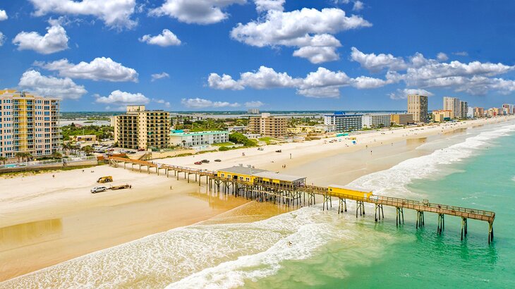 For a classic beach experience, the Daytona Beach Boardwalk and Pier offers a lively atmosphere with carnival-style attractions, shops, and restaurants. Visitors can take a ride on the historic Daytona Beach Amusement Pier, enjoy games and activities, or simply walk along the iconic boardwalk with views of the beach.