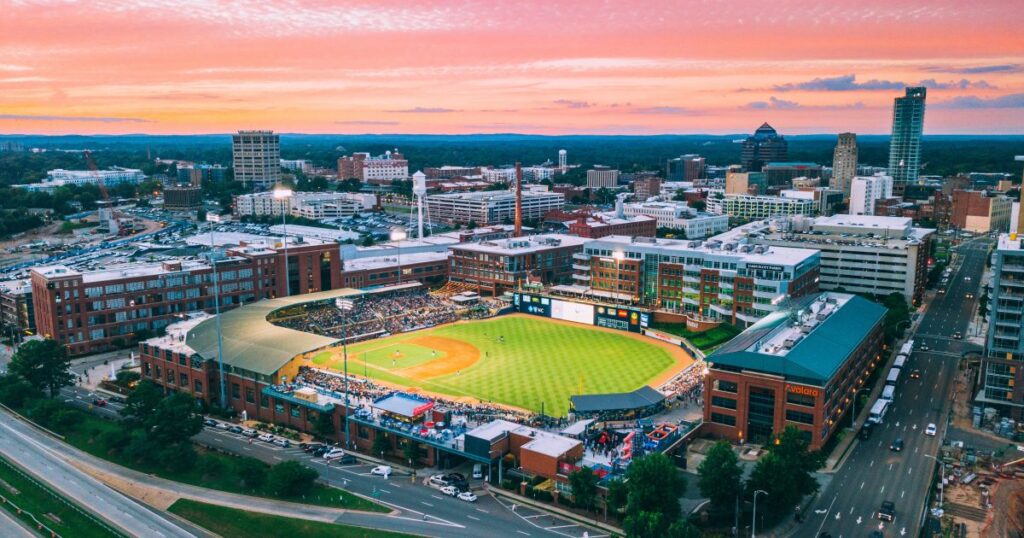 Home of the Durham Bulls baseball team. Catching a game is fun, and even when there’s no game the ballpark area is lively and nice to explore.